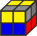 2、如果顶层不是一个黄色块在上面,需要看左前位置有一个黄色的块,如下图2A,用公式2来转换成图2-1的标准情况,最多需要三次即可转换成图2-1的情况,如果超过3次还没有转换成图2-1的情况,排除魔方装错的情况,那就是在转动的时候,没有检查好位置,就开始做公式2,请继续检查好情况,重新再来,多尝试,很快就掌握要领了。 |