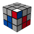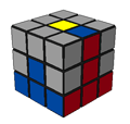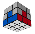 注意:图101的情况是没有正确归位的情况,需要调整白蓝和白红两个棱块的位置,才是正确的完成了底棱归位 |